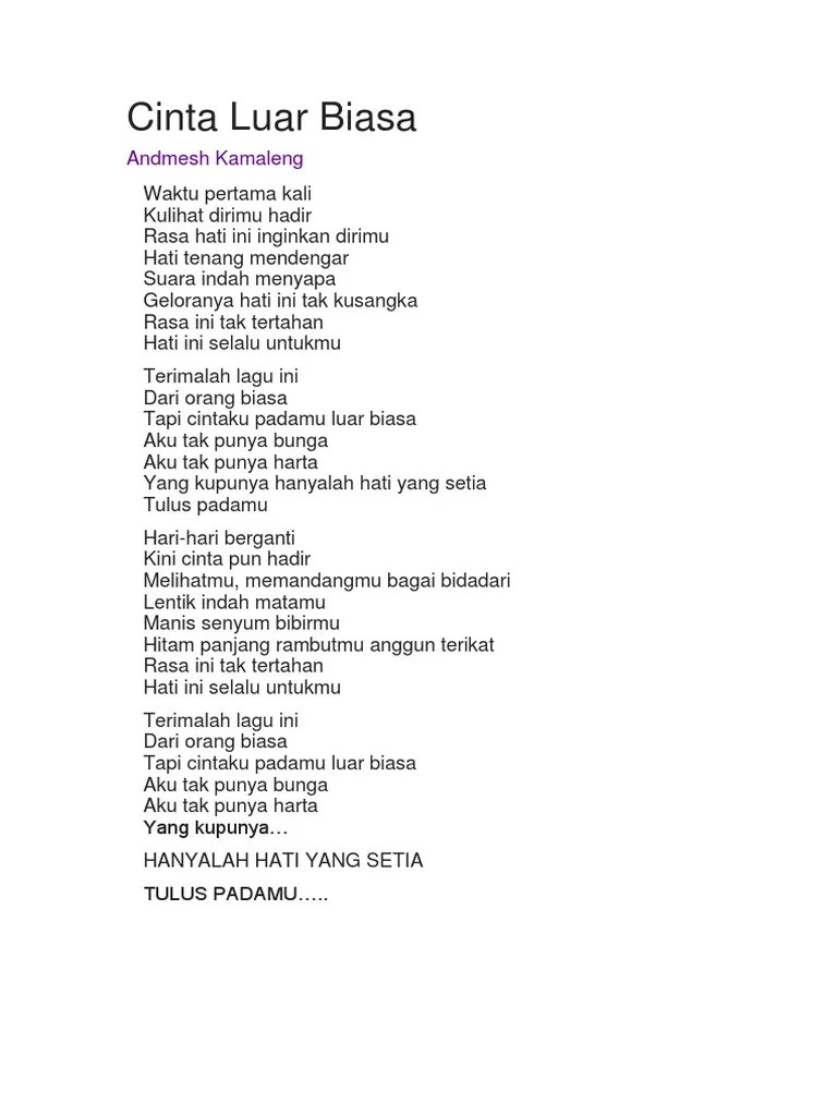Lirik lagu cinta luar biasa andmesh kamaleng.